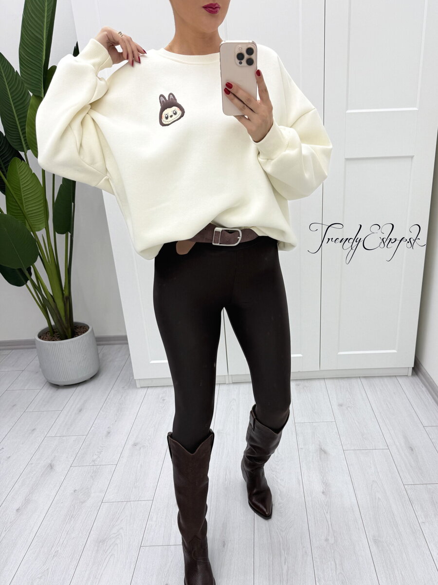 Príjemná mikina oversize strihu, s okrúhlym výstrihom, padnutými plecami a dlhými rukávmi, ozdobená rebrovaným olemovaním a potlačou "LABUBU" na prednom dieli. Jemne zateplená. (8)