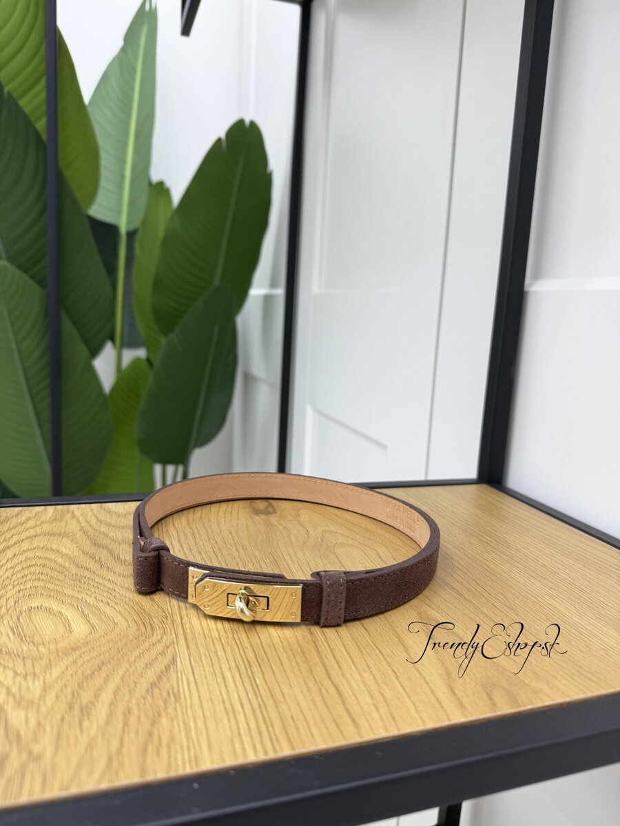 Rastúci kožený opasok z brúsenej kože - čokoládový