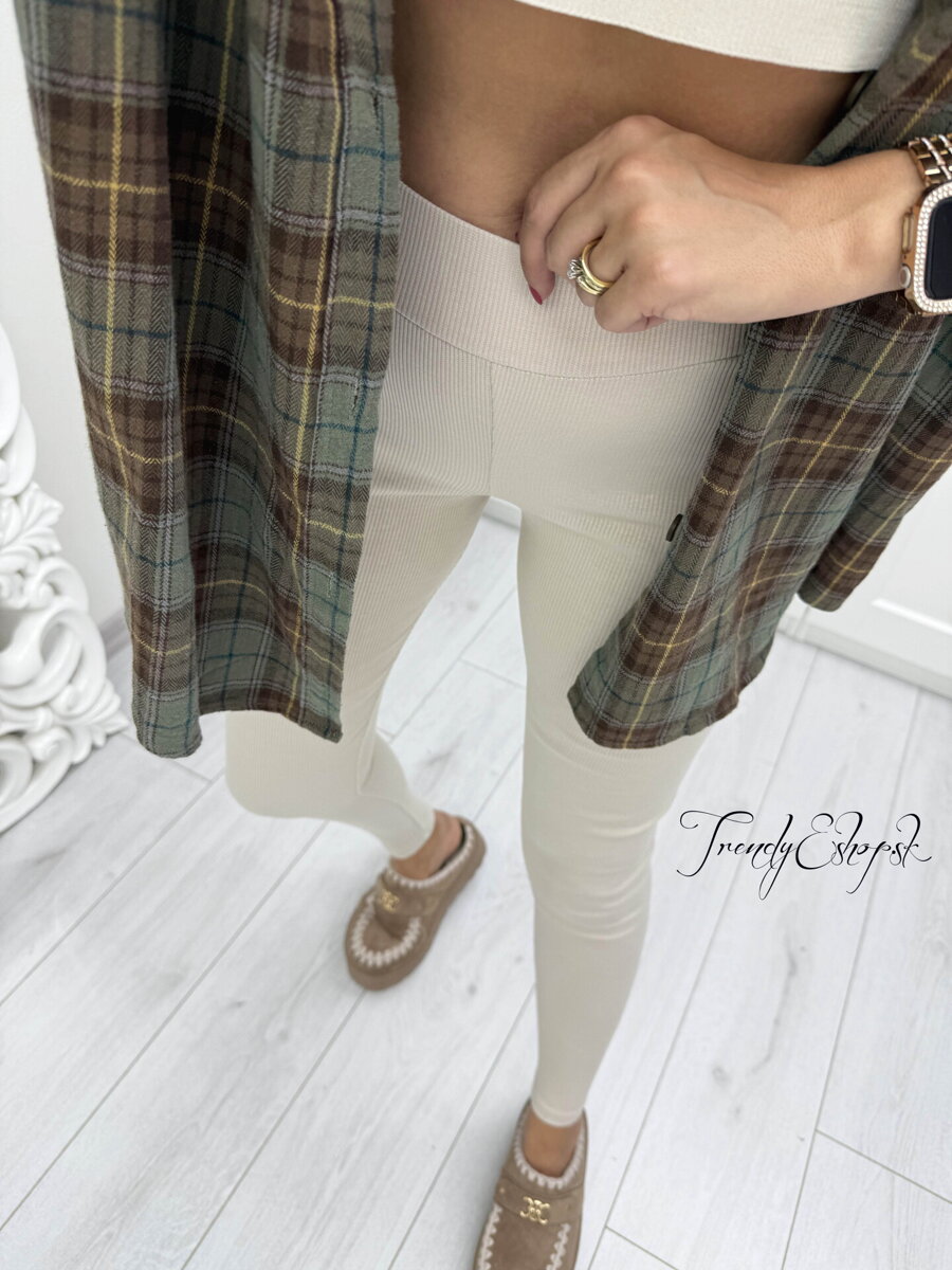 Jednoduché vrúbkované legíny IVORY - krémové B1809