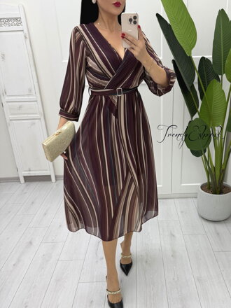 Vzorované šaty s plisovaným vrchným dielom - bordovo-béžové B1912