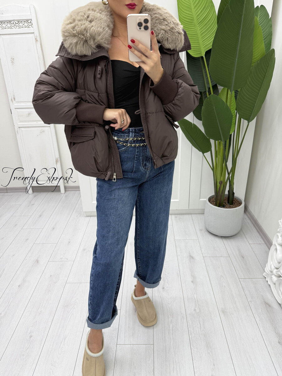 Nádherná "PUF" bunda s prešívanými panelmi, zapínaním na zips a padnutými plecami, ozdobená prednými vreckami s chlopňou a rebrovanými rukávmi. Súčasťou je aj nádherná kožušina, ktorú je možné odopnúť. (53)