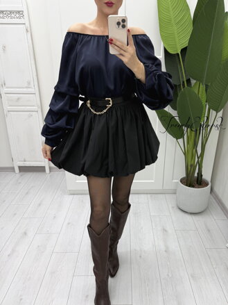 Saténová tunika s riasenými rukávmi - tmavomodrá B1938