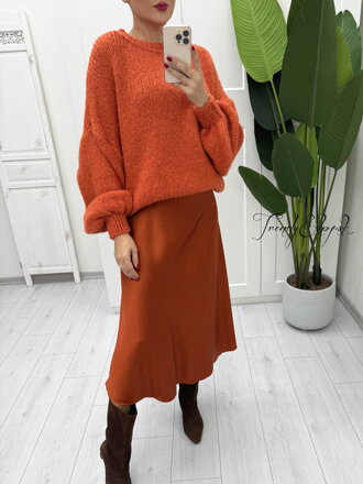 Midi sukňa zo saténovej látky so zášivkami- tehlová B2092