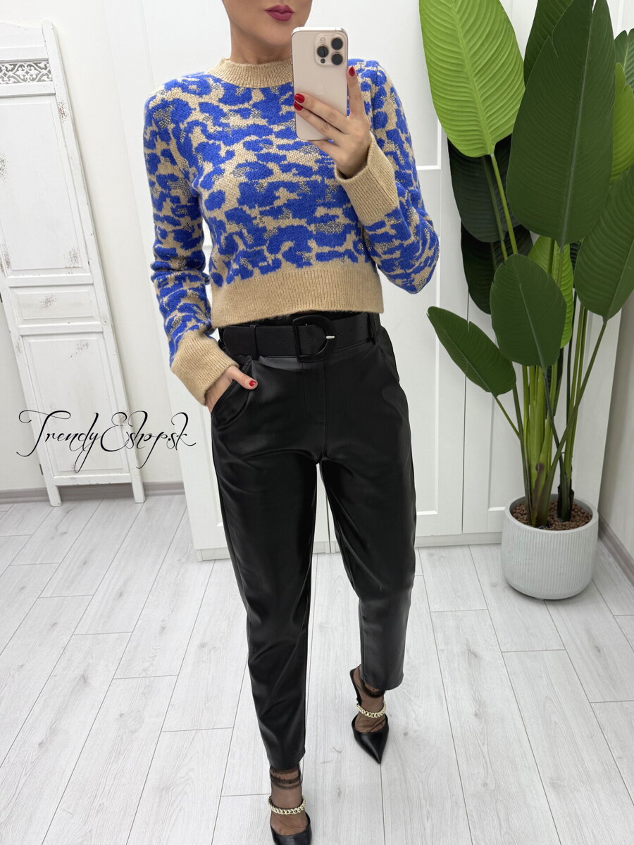 Krátky vzorovaný sveter Mia - modro-béžový B2189