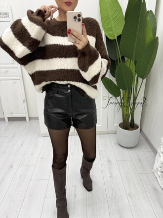 Úpletový pruhovaný sveter Gia - čokoládovo-béžový B2185