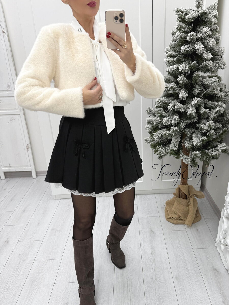 Príjemné plyšové bolerko krátkeho strihu, s dlhými rukávmi. Bez zapínania. Podšité. (15)