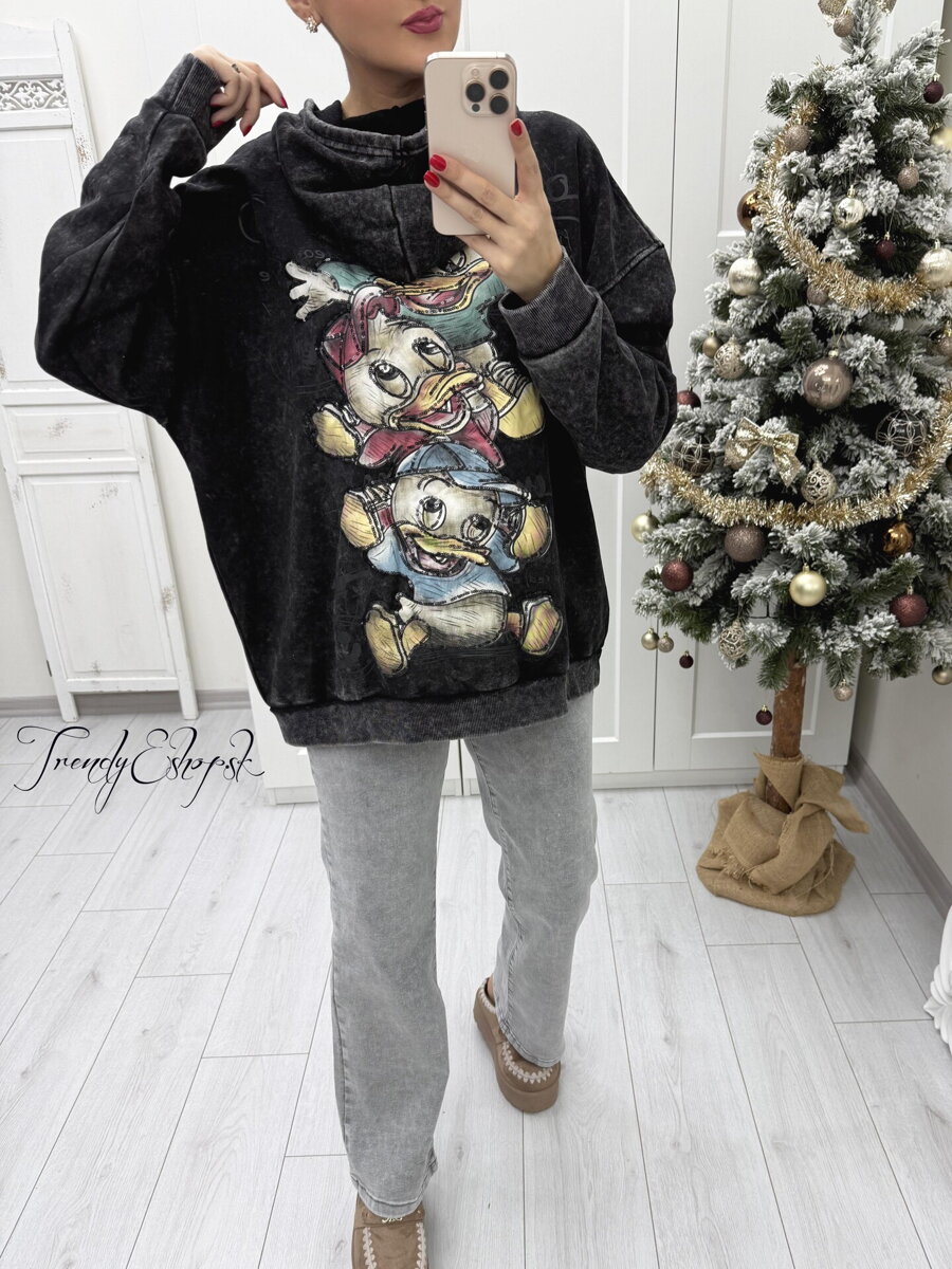 Moderná dámska mikina v oversize strihu, ktorá zaujme výraznou grafickou potlačou disney motívu na zadnej strane. Mäkký a príjemný materiál zabezpečuje maximálne pohodlie pri nosení, ideálny na bežné dni aj ležérne mestské outfity. Zdobená flitrami.