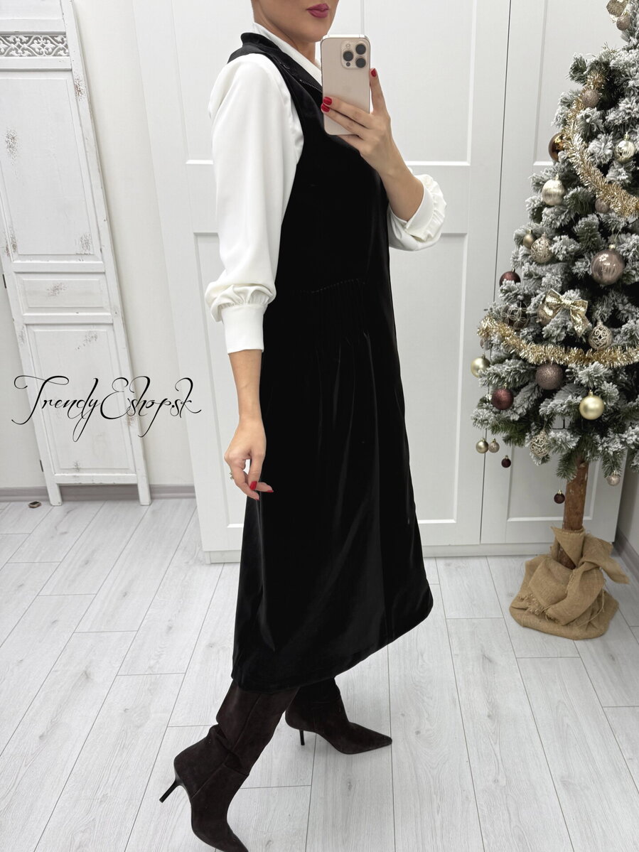Elegantné a univerzálne dámske šaty bez rukávov, ktoré ponúkajú množstvo možností kombinovania. Majú zapínanie na zips po celej dĺžke, mierne rozšírenú sukňu a tvarujúci strih v oblasti pása. Praktické bočné vrecká zvyšujú komfort pri nosení. Vďaka jednoduchému, čistému dizajnu sú ideálne na vrstvenie – krásne vyniknú s košeľou, blúzkou, rolákom alebo čipkovaným topom.