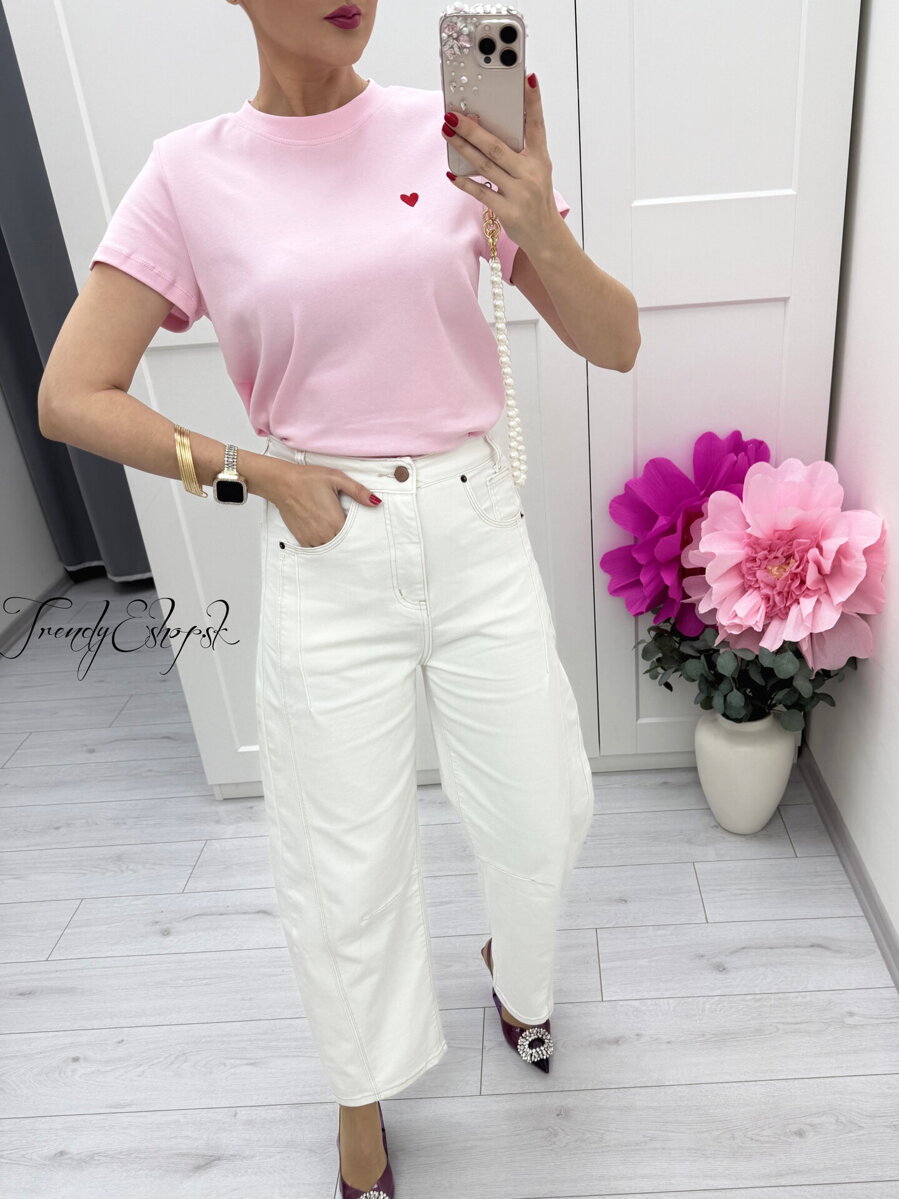 Ružové bavlnené tričko s výšivkou srdca DILVIN C71