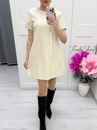 Jemné a pritom výrazné koženkové šaty v sviežom béžovom odtieni, ktoré zaujmú na prvý pohľad čistými líniami a ženským detailom na chrbte ❤️ Model pôsobí elegantne, moderne a veľmi štýlovo – ideálny na bežné nosenie aj špeciálne príležitosti.