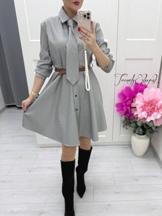 Pepitové košeľové šaty s kravatou C17