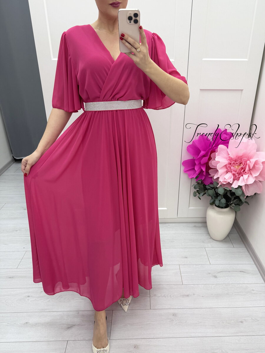 Dlhé cyklamenové šaty so štrasovým opaskom C289