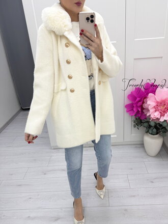 Krémový alpaka kabát, dámsky kabát so zlatými gombíkmi, kabát s kožušinovým golierom, elegantný zimný kabát, hrejivý kabát s vlnou, luxusný dámsky kabát ❤️ (13)