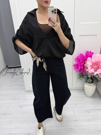 Spodná časť je zakončená gumičkou, vďaka čomu sa krásne prispôsobí postave a vytvorí jemne blúzkový efekt ❤️ Nemusíš riešiť vrstvenie – tielko je už všité, takže sa cítiš komfortne počas celého dňa.