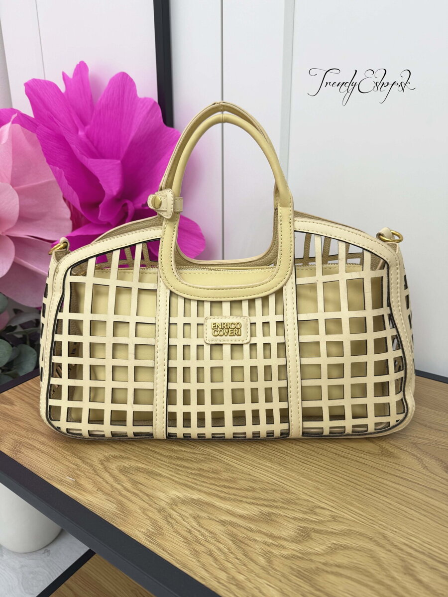 Dierovaná kabelka ENRICO COVERI - béžovožltá C344