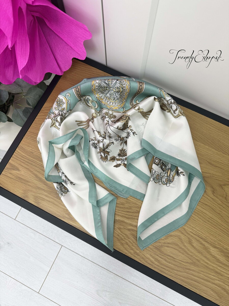 Vzorovaná šatka, ktorá ozdobí každý outfit. Možné nosiť na viacero spôsobov, na hlave, krku, kabelke a rifliach.