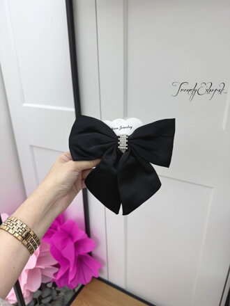 Saténová mašľa so štrasovou ozdobou - čierna C362